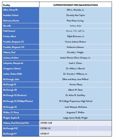 NOLA-PS Superintendent’s Facility Renaming Recommendations Will Head to OPSB for Final Vote Thursday